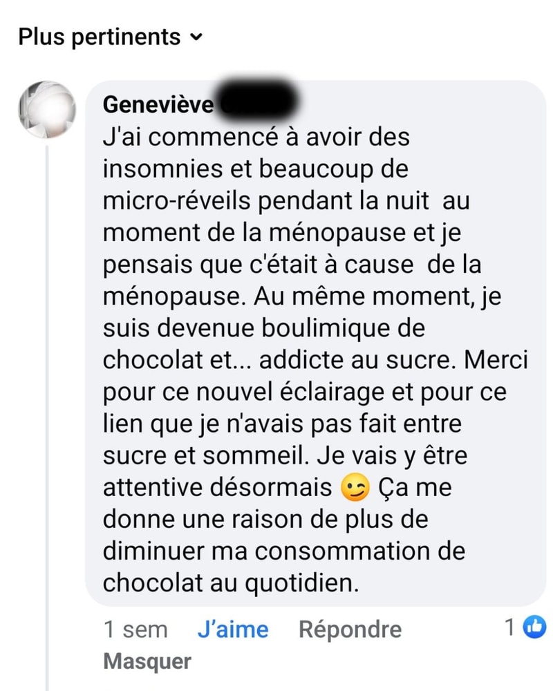 Je prenais un aliment sucré en pensant me donner un coup de boost. J'étais irritable et les émotions qui en découlaient étaient une bonne excuse pour manger des bonbons, du chocolat, des gâteaux... etc.