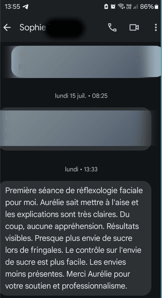Message adorable de ma cliente Sophie
